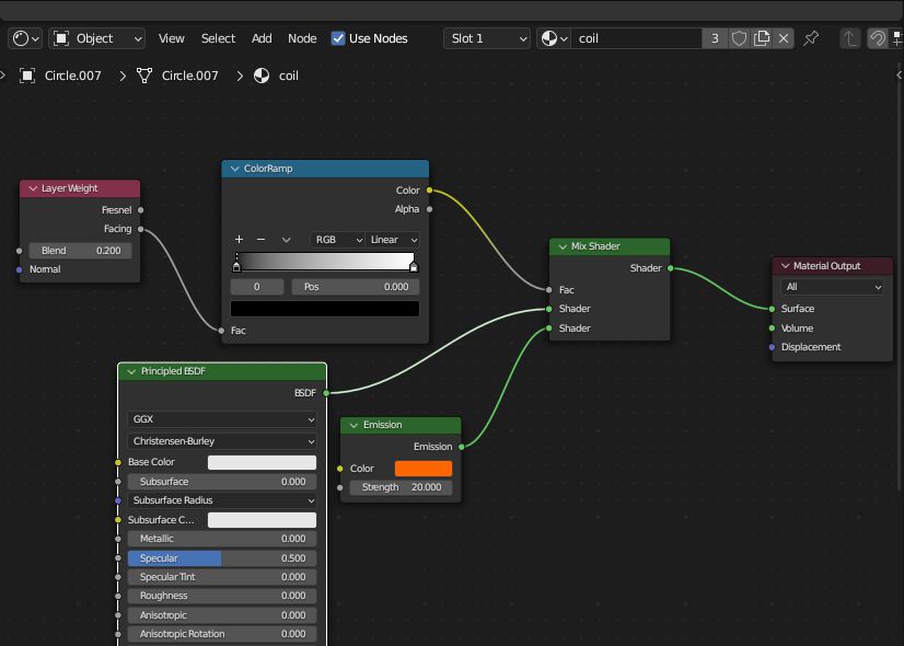 Mixシェーダーを”混ぜる”ノードだとすると、LayerWeightノードは”混ぜ方”を決めるものになります。